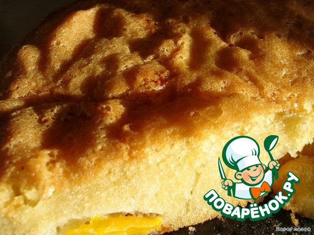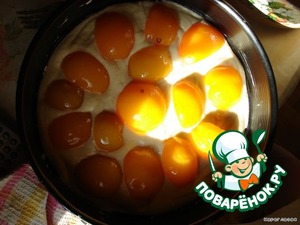 Затем на персики вылить оставшееся тесто. Поставить в разогретую до 180 градусов духовку на 50 минут.