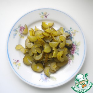 Крабовые палочки нарезаем на 4 части вдоль и на 3 поперек. Такой вот крупной соломкой.