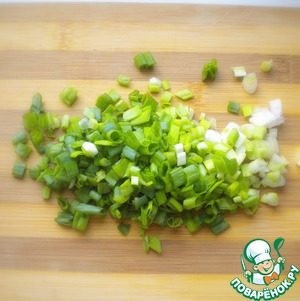 Все ингредиенты смешиваем (немного нарезанного лука оставляем для украшения). Добавляем соль и перец по вкусу.