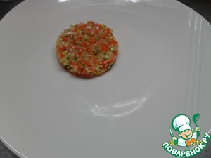 При подаче на тарелку выложить через формовочное кольцо готовый овощной тар-тар