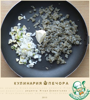 Грибы как можно мельче изрубить, обжарить на сковороде на сливочном масле (!)