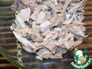 С курицы снять кожицу, нарезать брусочками или как получится.
