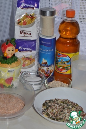 Ингредиенты для «Цельнозерновой хлеб с отрубями и семечками»: