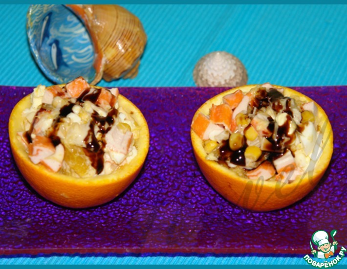 Рецепт «Салат из крабовых палочек с апельсинами»: