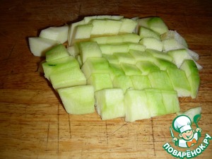 У цуккини срезаем кожуру, удаляем семечки и нарезаем кубиками.