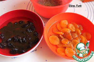 Теперь займемся начинкой: зальем сухофрукты кипятком на часок.