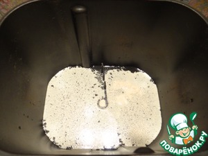 Помещаю ведерко в хлебопечку и включаю режим замеса теста.