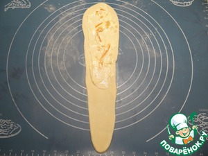 Сворачиваю тесто, начиная с широкого конца, пока не закроется начинка.