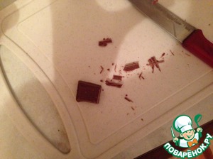 Пока белый шоколад растапливается, нужно нарезать тонкими полосками молочный шоколад.