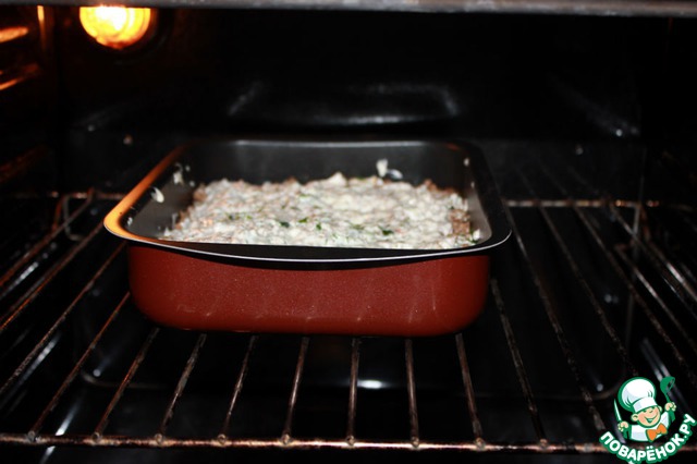 Поставить форму в предварительно разогретую духовку 200*С, запекать 30-35 минут