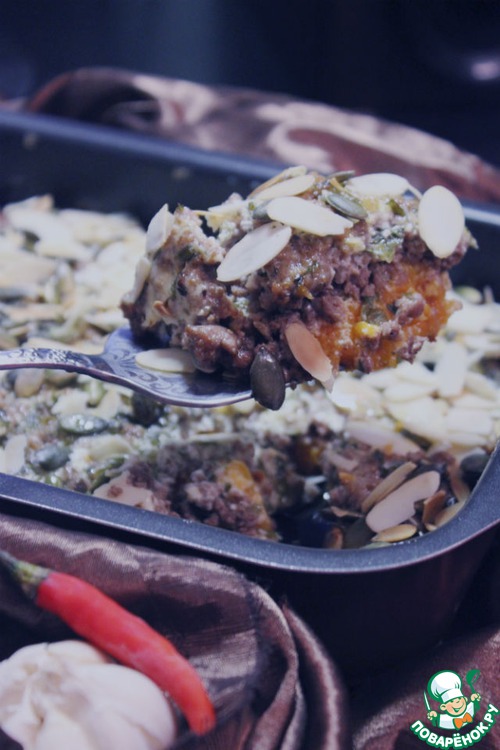 Рецепт «Иорданская запеканка из тыквы с фаршем в тахинно-йогуртовом соусе»: