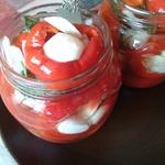 Пикантная закуска для любителей остренького. Как правило, очень нравится мужчинам. Готовится просто и быстро. Такие перчики я привезла в прошлом году из Венгрии, посадила их семена, и в этом году я собрала урожай: 2 ведра маленьких кругленьких остреньких перчиков.