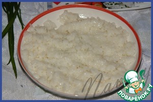 По прошествии 15 минут горячий рис перекладываем в широкую посуду и поливаем заправкой, слегка перемешивая, количество заправки добавляйте на вкус, у меня ушла вся. Рис остужаем.