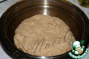 Вот такое оно у меня было через два часа. Как следует его обминаю, формую вытянутый колобок.