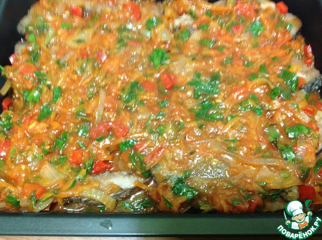Рецепт «Сазан, запеченный с томатами и овощами»: