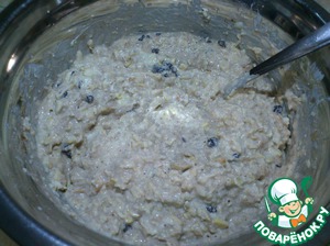 Добавляем в овсяную смесь вместе с орехами, смородиной, кокосом и корицей. Перемешиваем