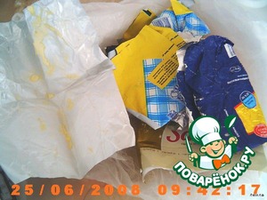 Девочки, маленький совет: не выбрасывайте из-под масла бумажки, то, что остается собирайте, кладите в морозильную камеру. Когда нужно обмазать формы для выпекания, они прекрасно подходят, смазали и выбросили. Экономно и руки не пачкаете)))