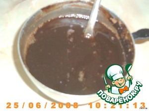Шоколадная глазурь: 1/2 стакана воды и 1 стакан сахара, перемешать, уварить, добавить какао-порошок, охладить до 60-80*. Чтобы вызвать кристаллизацию сахара, периодически опускать лопаточку в глазурь и растирать ее о края кастрюли. Когда смесь посветлеет, на поверхности появиться блестящая корочка, глазурь готова.