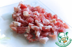 Обжариваем лук и бекон до того момента, когда лук станет золотисто-коричневатым. Зажарка пока что не нужна, а вот сковородка понадобится еще разок :) -