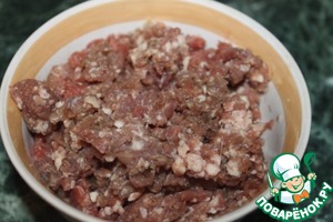 Добавляем в фарш мелко нарезанный лук, солим, добавляем специи, перемешиваем.