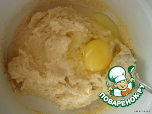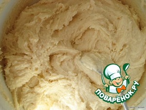 Убавьте скорость миксера и введите муку, перемешайте до однородного состояния.