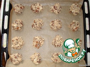 Противень застелите бумагой для выпечки. Столовой ложкой выкладывайте печенье на противень на расстоянии 5 см друг от друга. Выпекайте в духовке 15-17 минут, пока не подрумянится.