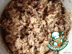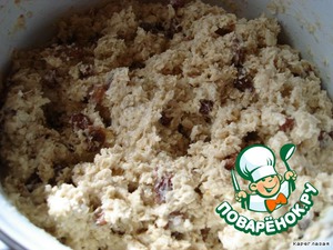Затем добавьте геркулесовые хлопья. Перемешайте (будет очень тяжело перемешивать, я даже немного ложку погнула).