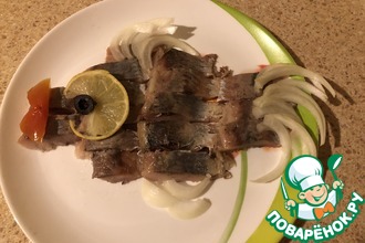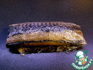 Филе малосольной скумбрии со специями, свёрнутое особым способом и замороженное.