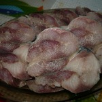 Через пару часов рулет замёрзнет и его уже можно пробовать. Нарезаем замороженный рулет на пластинки (это показано на фото) и подаём. Они быстро оттают на столе. Рыба получается малосольная, исключительно вкусная и ароматная ( запахом напоминает килечный посол). Удобно то, что у вас в холодильнике будет всегда в запасе вкусная солёная рыбка. Две минуты - и на столе идеальная закуска. К дымящейся паром варёной картошечке, например.