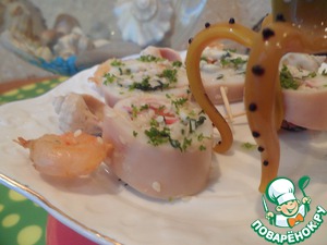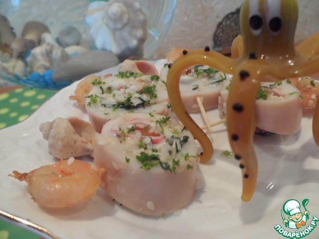 Рецепт «Канапе из кальмаров с крабовыми палочками»: