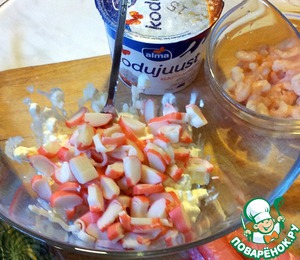 Рецепт «Салат с творогом и крабовыми палочками»: