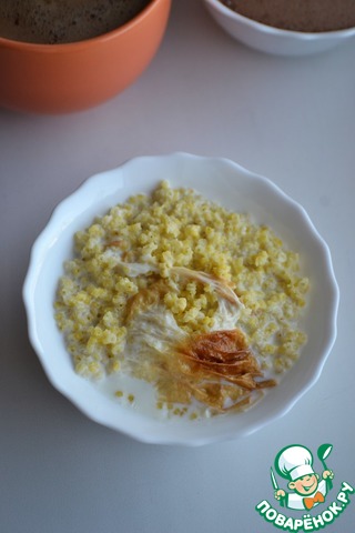 Пшено хорошо промыть и выложить на дно сковородки или формы