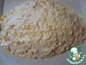 Промазываем этот слой майонезом, я брала заранее приготовленный домашний - по этому рецепту http://www.povarenok .ru/recipes/show/405 24/