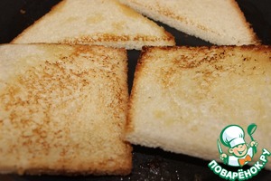 • Начнем с хлеба. Обжарим его на сливочном масле с двух сторон до золотистого цвета.