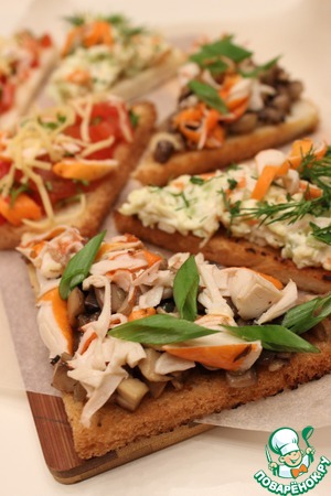 Быстрые тосты с крабовыми палочками "Краски лета"
