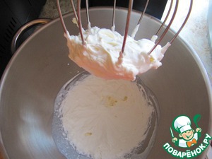 Для приготовления начинки взбить жирные сливки до мягких пиков.