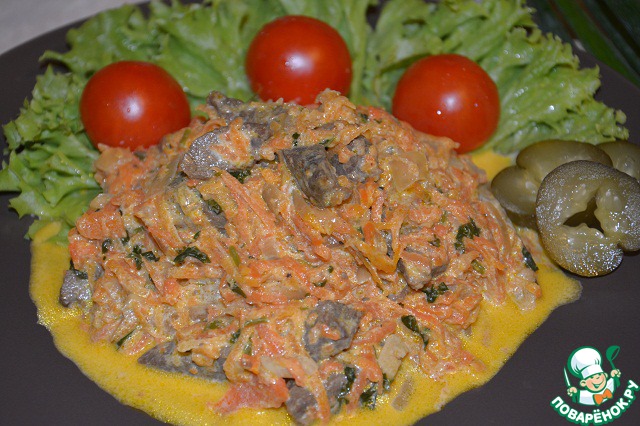 Это блюдо может подаваться как второе с гарниром в горячем виде, так и как самостоятельный салат в холодном виде.