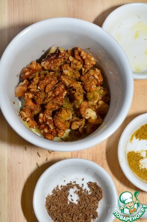 У меня как нельзя кстати дома был сыр с фенигреком, он имеет пикантный вкус грецкого ореха. -