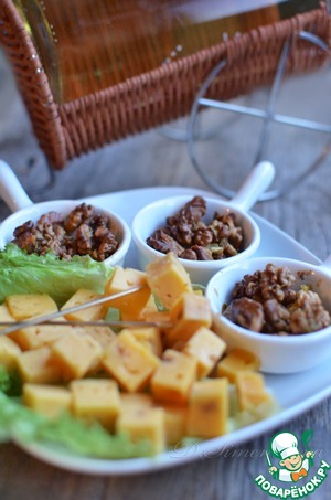 И вот получилась такая интересная закуска с орехами и сыром к белому вину.