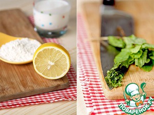 Подготовим лимон, муку, смешаем сливки и молоко. Мелко нарежем мяту.