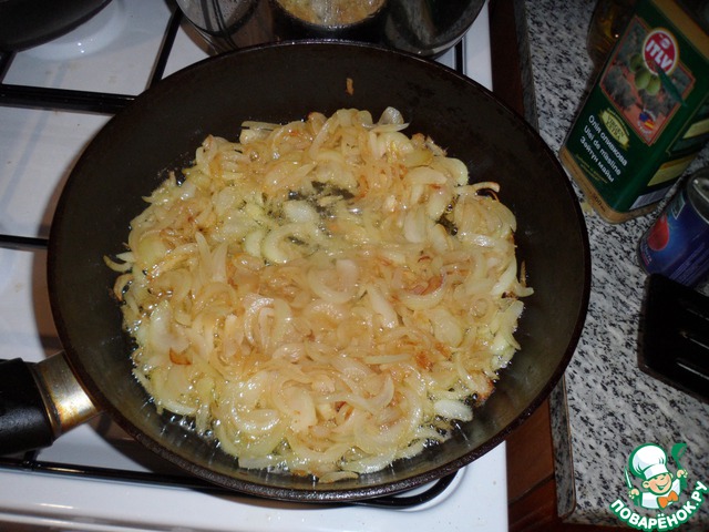 Мясо из бульона предлагалось потушить вместе с луком. Я его обжарила отдельно до румяной корочки. Это, кстати, Джиз - восточное блюдо. Попробуйте, если понравится, есть смысл погуглить и приготовить.