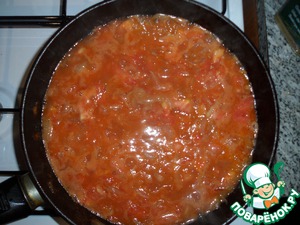 Добавляем помидорки к луку. Подсолим, приправок кинем, пахнет дома - что надо.