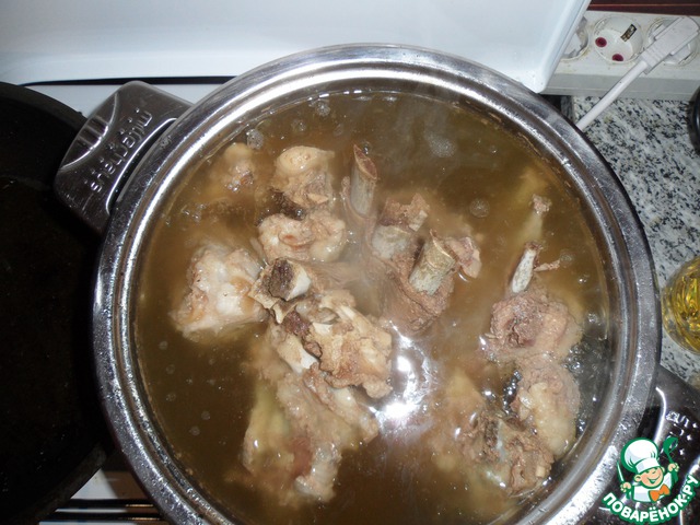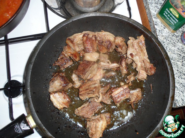 - Баранина (или жирная говядина на ребрышках и грудинка говяжья) — 2 кг