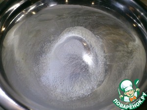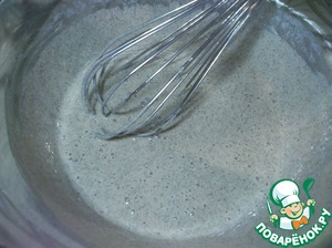 Затем, постепенно добавляем эту смесь в миску с мукой, перемешивая венчиком до однородности