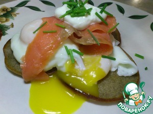 Рецепт «Яйца-пашот и копченый лосось с оладьями»: