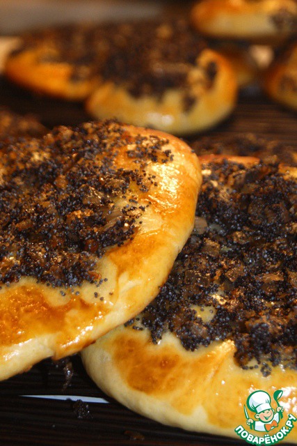 CEBULARZ Lubelski — цебуляки, 30 апреля 2007 года они были внесены в список традиционных продуктов. ИХ история восходит ко временам Казимира Великого. Пшеничное тесто, обогащенное добавлением масла и молока, очень вкусное и питательно-ценное, а нарезанный жареный лук, соль и мак изумительно улучшают их вкус и аромат, отличая этим от других видов хлеба. Цебуляки с луком являются первоклассными, и весь Люблин гордится и любит их всей душой! (от автора рецепта). С чем я на все 100% согласна! Очень рекомендую, попробуйте!