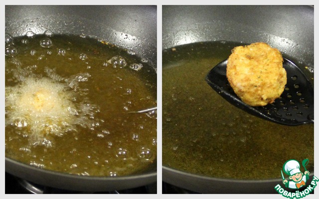 Каждый шарик опускать в масло примерно на 2 минуты. Они станут коричневатыми. Будьте осторожны! Масло ОЧЕНЬ горячее!