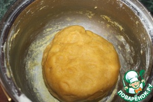 • Прогреваем, постоянно помешивая, пока тесто не скатается в ком.