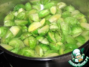 Капусту заливаем горячей соленой водой, доводим до кипения и варим 7-10 минут (она не должна стать мягкой).