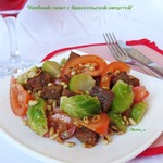 Полезный и вкусный салат, который может вполне заменить ужин! С брюссельской капустой я знакома всего несколько последних лет (раньше не довелось попробовать), узнала о ее пользе, теперь стараюсь готовить пощаче, тем более, что она вкусна и в салатах, и в горячих блюдах. Брюссельская капуста низкокалорийна, содержит клетчатку, железо, фосфор, калий, витамины группы В, провитамин А. Ее употребление снижает риск раковых заболеваний и заболеваний сердечно-сосудистой системы. Очень богата содержанием витамина C. Не содержит натрия и холестерина. Будущим мамам рекомендуется как источник фолиевой кислоты, которая необходима для правильного развития нервной системы и уменьшает риск врожденных пороков у детей. Сплошная польза! НО брюссельскую капусту не стоит употреблять людям, страдающим заболеваниями кишечника и имеющим повышенную кислотность желудка.